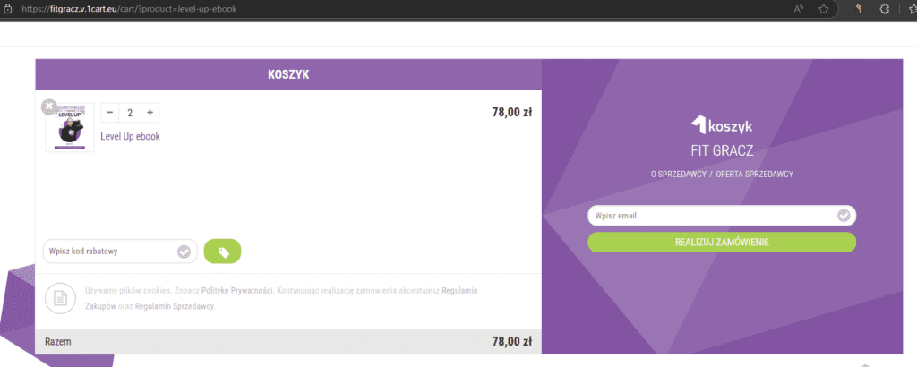 Opłaty pojawiają się dopiero, gdy sprzedasz swój produkt. 1koszyk w darmowym planie pobiera prowizję w wysokości 6.9% wartości sprzedaży. Przykładowo, jeśli sprzedasz e-booka o wartości 30 zł, zapłacisz 2,07 zł prowizji.