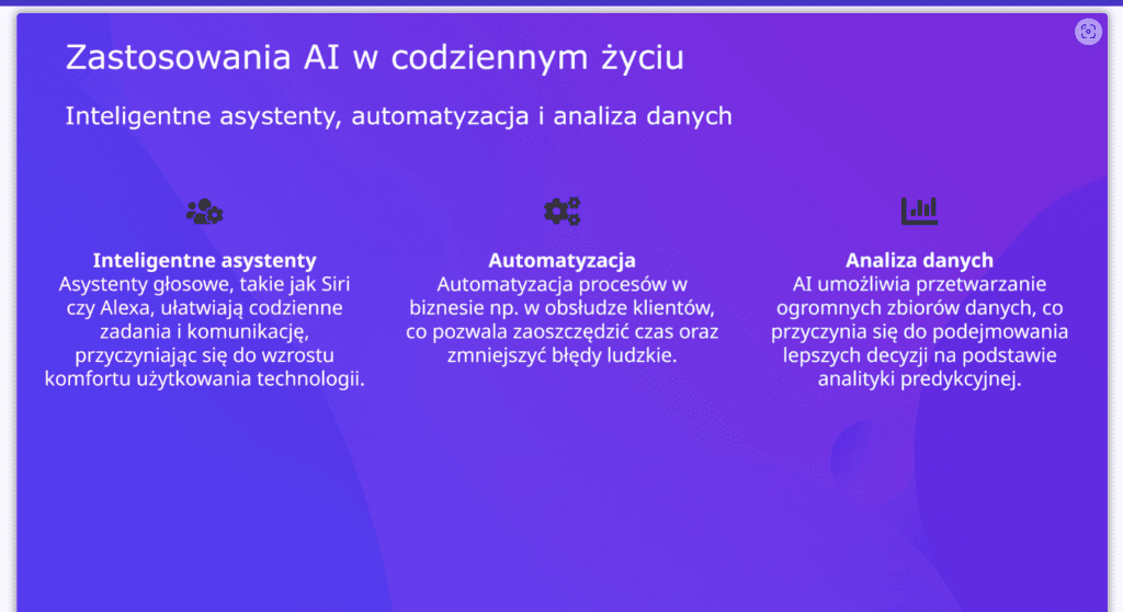 Pamiętaj o tym, że tworząc komendę, musisz dopisać, by prezentacja była po polsku. W przeciwnym razie utworzy się treść w języku angielskim. Musisz również kontrolować, czy tłumaczenie jest poprawne, ponieważ Pitch robi błędy.