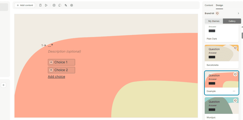 Typeform pozwala też na dodawanie obrazów, GIF-ów i filmów do ankiet, co sprawia, że stają się one bardziej angażujące i interaktywne. Tak jak w przypadku poprzedników, tu również możemy dostosować wygląd ankiet do swojej marki, modyfikując kolory, czcionki, czy dodając własne logo.