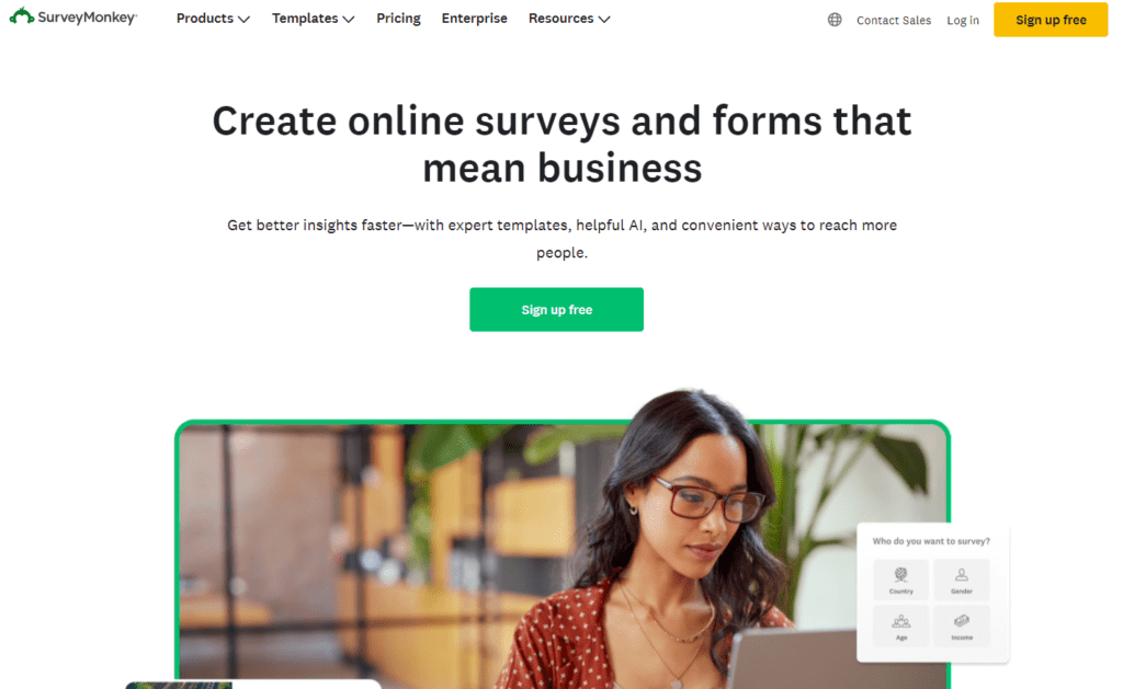 SurveyMonkey jest prosty w użyciu i posiada funkcje, takie jak testowanie różnych wersji ankiet, łatwe integracje z innymi platformami, a samo tworzenie ankiety jest jednym z najprostszych biorąc pod uwagę wszystkie kreatory z tego rankingu.