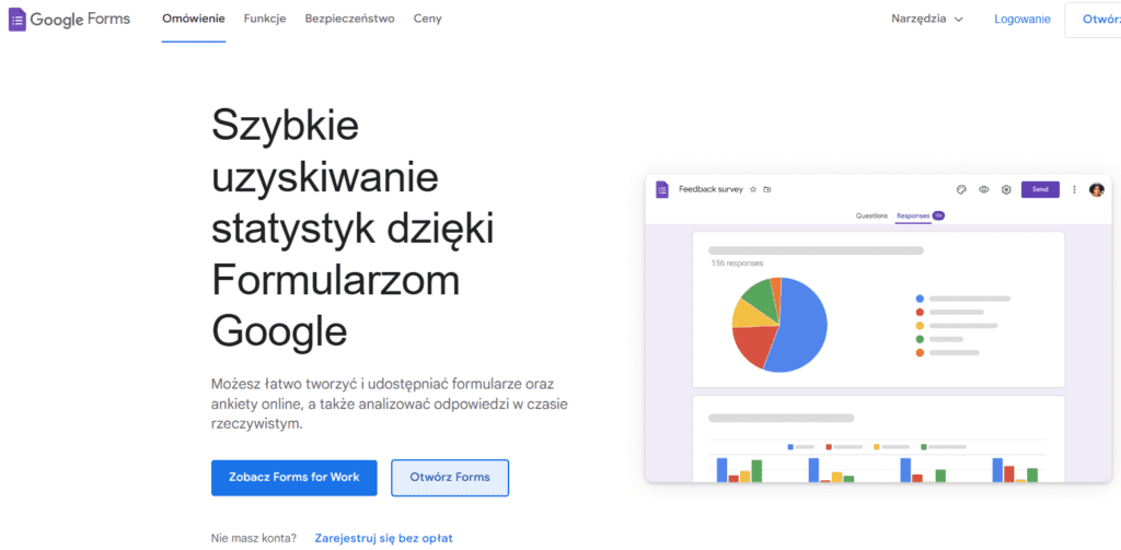 Szukasz w stu procentach darmowego, nieskomplikowanego, oraz szybkiego kreatora ankiet? Cały na biało wkracza Google Forms. Każdy, bez względu na poziom umiejętności i doświadczenia może tu szybko utworzyć nowy formularz, a funkcje tego narzędzia są bardzo solidne.