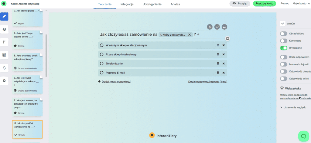 Inetrankiety to kolejny na tej liście polski generator ankiet, który osobiście przypadł mi do gustu. Nie chcę się powtarzać i po raz kolejny rozpisywać się na temat możliwości personalizacji, integracji, logice pytań, czy analityce. W Inetrankiety znalazłem wszystko, co było mi potrzebne.