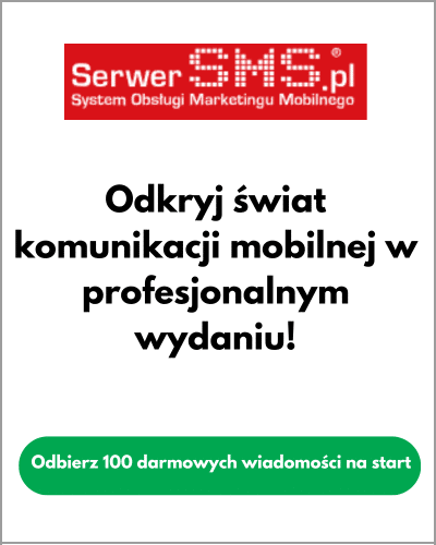 | 1. Serwer SMS | 10-19 gr | 100 | Firm, sklepów, urzędów i organizacji różnej wielkości | Masowa wysyłka SMS/MMS, automatyzacje, raporty, API, powiadomienia, personalizacja |