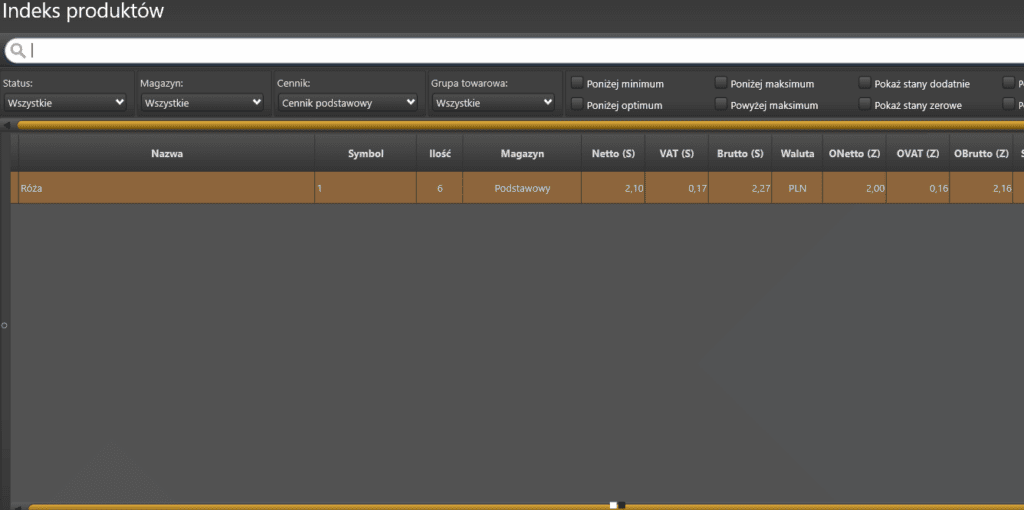 Możemy wprowadzać produkty, przypisywać do nich ceny, kody GTU, a nawet zapisywać marże, a gdy sprzedamy produkt poniżej progu opłacalności, zostaniemy o tym ostrzeżeni.