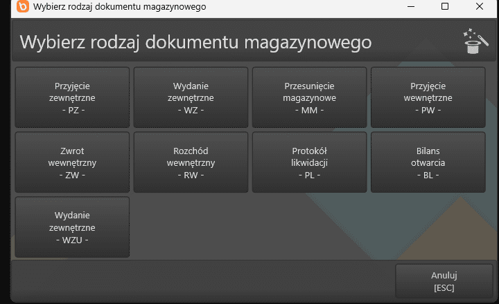 Możemy generować wiele dokumentów magazynowych, w tym między innymi przyjęcie zewnętrzne, rozchód zewnętrzny, ale i spis z natury i inwentaryzacje.