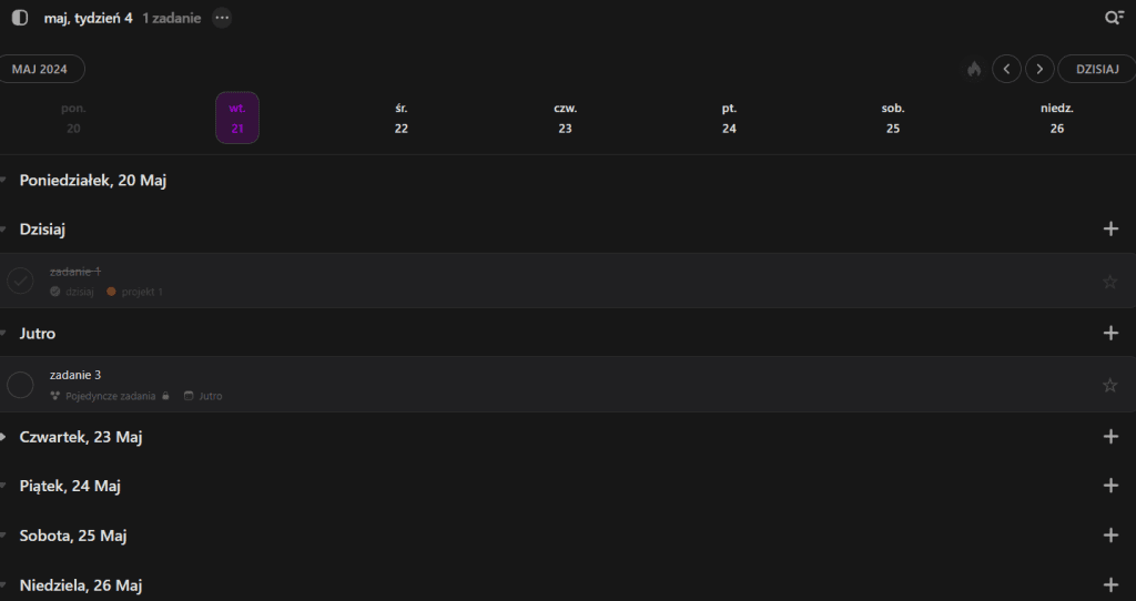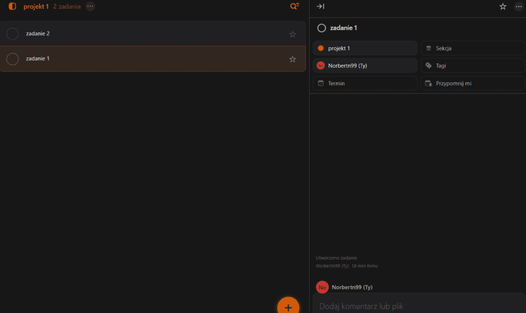 Gdy stworzymy projekt, w następnym kroku możemy dodać do niego wszelkie niezbędne zadania do wykonania. W zadaniach również mamy kilka ciekawych funkcji. Możemy na przykład przypisać zadanie konkretnej osobie, ustalić termin zakończenia, ustawić przypomnienie na konkretny termin, dodać tagi, czy sekcje.