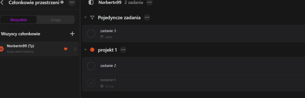 Nozbe oferuje również możliwość utworzenie dodatkowych przestrzeni pracy. Może być to użyteczne, jeśli chcesz stworzyć osobną przestrzeń dla spraw osobistych, czy przestrzeń dla innych obszarów twojej działalności. W planie Premium możemy stworzyć 2 przestrzenie, a w planie Business nieskończoną liczbę.