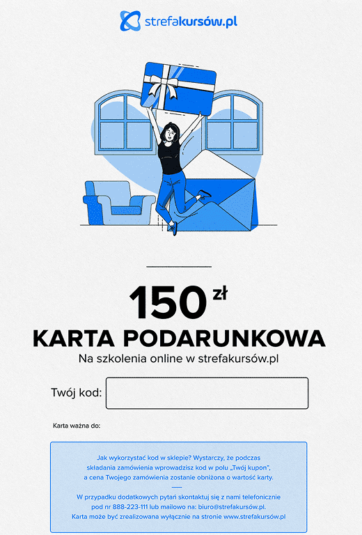 Jeżeli masz wokół siebie osoby, które lubią się uczyć i zdobywać wiedzę, Strefa Kursów oferuje dla nich kursy na prezent lub karty podarunkowe o wartości 100, 150, 200 zł, lub o niestandardowej wartości.