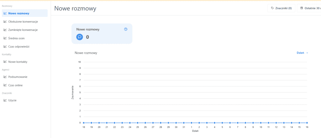 A w zakładce ze statystykami znajdują się wszelkie dane analityczne dotyczące odbytych rozmów. Znajdziemy więc informacje na temat wszystkich rozmów, oceny, czasy odpowiedzi, itd.