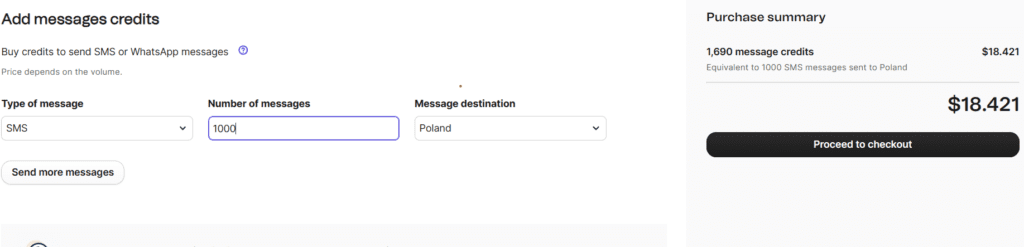 Kampanie WhatsApp: Podobnie jak w przypadku kampanii SMS, również mamy możliwość wysyłki klientom wiadomości w aplikacji WhatsApp. Koszty kredytów są takie same.