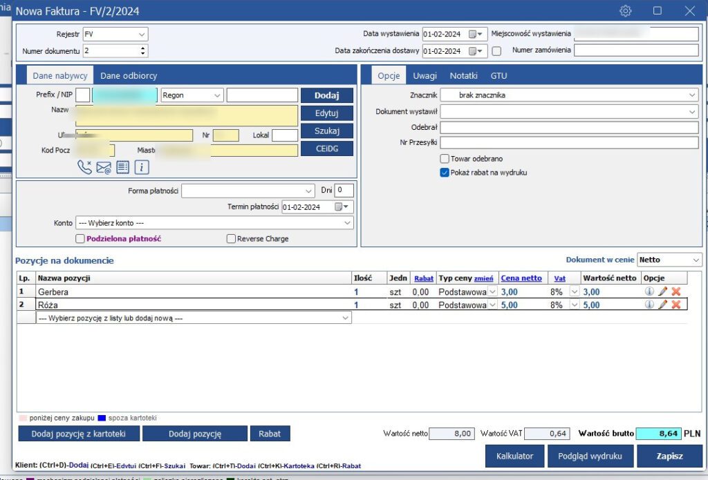 W podobny sposób możemy prowadzić ewidencję klientów. Możemy dodawać ich dane, by później wybrać ich z listy do kolejnych faktur.