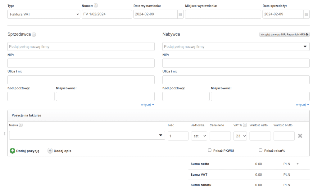 Co prawda niektóre funkcje programu są w tym pakiecie ograniczone, takie jak możliwość logowania się na konto tylko dla 1 użytkownika, raporty podstawowe, ograniczone wsparcie, i kilka innych, jednak jeśli ktoś chce wystawiać tylko faktury, to te ograniczenia nie będą problemem.