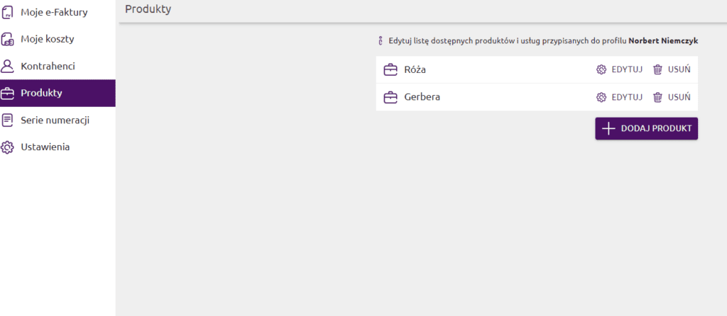 W module e-Faktury możemy także dodawać faktury kosztowe, oraz prowadzić ewidencję klientów oraz produktów.