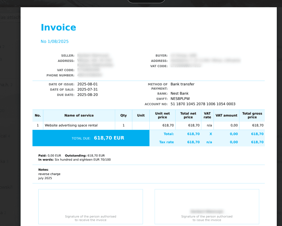 Fakturę możesz też stworzyć w języku angielskim, z czego bardzo często korzystam.
