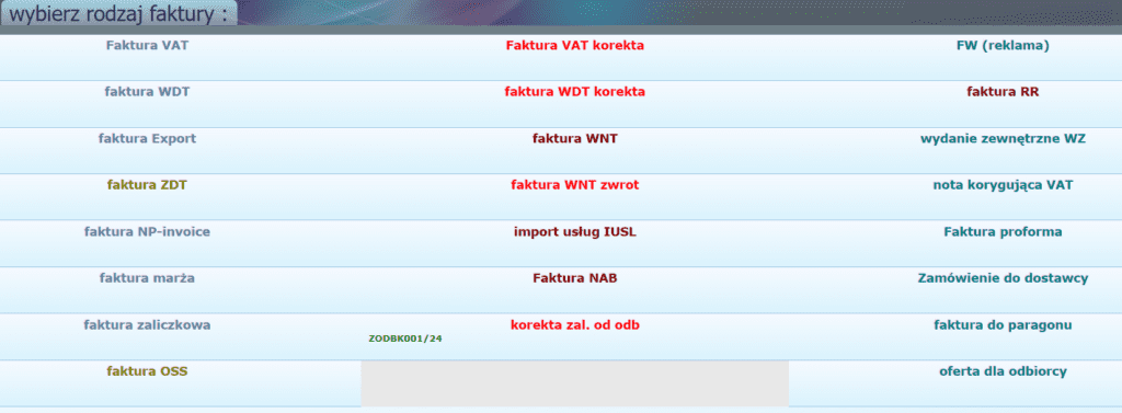 Przede wszystkim można w nim wystawiać pełnoprawne i zgodne z przepisami faktury. Rodzajów faktur, które możemy wystawić jest kilka, wśród nich oczywiście faktura VAT, korekta, czy faktura zaliczkowa. Warto zaznaczyć, że nie ma możliwości wystawienia paragonu.