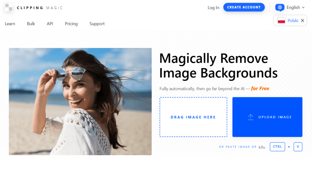Clipping Magic jest niezwykle prosty w użyciu. Aby rozpocząć, nie musimy zakładać konta. Wystarczy tylko przejść na tę stronę, oraz przeciągnąć lub wgrać zdjęcie, które chcemy edytować.