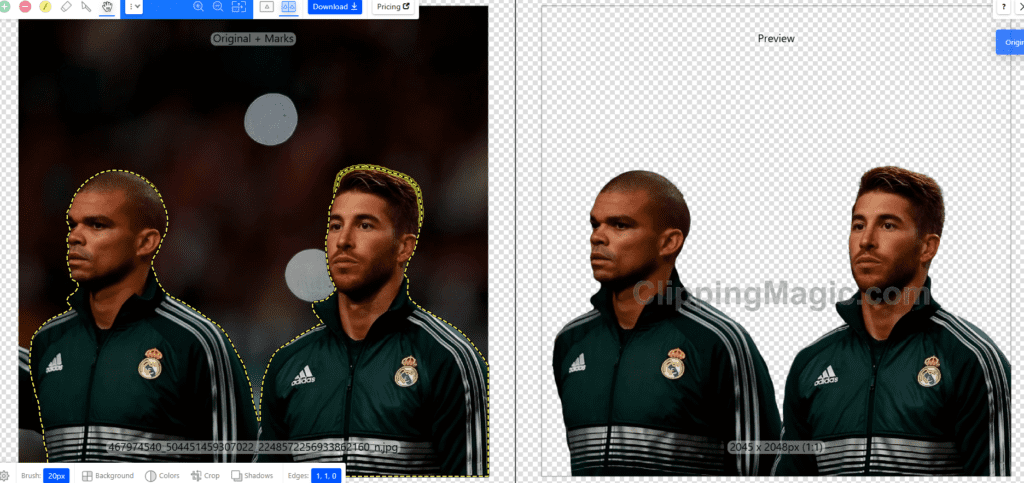 Tak, pobieranie z Clipping Magic zasadniczo jest darmowe, jednak rozmiary zdjęcia zostaną zmniejszone do maksymalnie 500x500px. Przykładowo w moim wypadku, oryginalne zdjęcie miało wymiary 2048×2048 px, więc zostało zmniejszone aż 4-kronie. Dodatkowo Clipping Magic rekomenduje, by pobrane zdjęcia pozostały tylko do użytku niekomercyjnego.