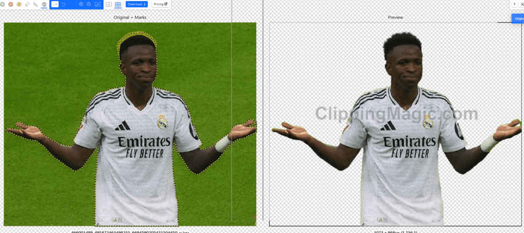 Clipping Magic jest obecnie tak inteligentny, że po wyborze zdjęcia, narzędzie samo dokona usunięcia tła. To wszystko zasługa wyszkolenia na milionach obrazów ze świata rzeczywistego, a nie na sztucznych danych laboratoryjnych. Clipping Magic rozpoznaje kształty i domyśla się co na obrazku jest tłem, a co jest na pierwszym planie, po czym dokonuje dokładnego usunięcia tła.