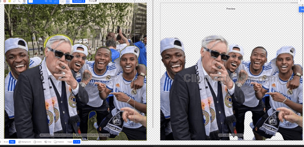 Inne narzędzia do edycji: Oprócz tego, Clipping Magic oferuje inne narzędzia do edycji, takie jak dostosowanie kolorów, cieni, nasycenia, zmiana koloru tła, przycinanie zdjęcia, i inne.