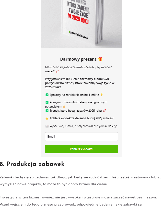 Oczywiście możesz utworzyć coś prostszego, jednak najlepiej będzie, jeśli w zamian za zapis do newslettera zaoferujesz coś w zamian, np. kod zniżkowy, czy darmowy e-book.