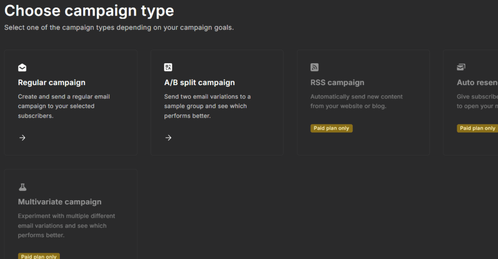 W tym celu klikamy „Campagins”–>”Create campaign”. Następnie klikamy „Regular campaign”.