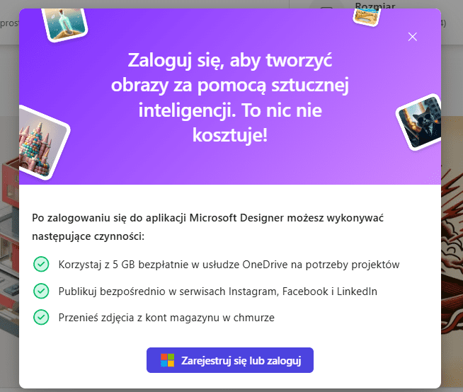 Po przejściu do Microsoft Designer od razu możemy przystąpić do działania.