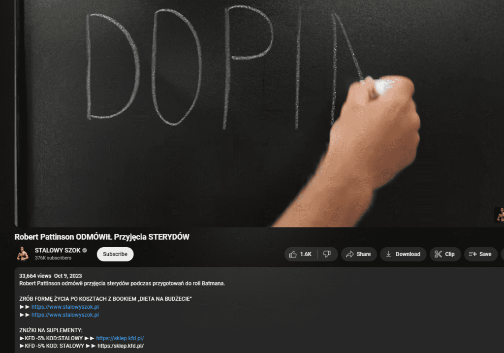 Przykładowo, autor kanału STALOWY SZOK na temat sportów siłowych promuje kilka swoich e-booków na temat diety, treningów, czy sylwetki. Produkty te kosztują 49-79 zł, co z pewnością wpływa na większą liczbę sprzedanych sztuk, niż gdyby promował swój kurs.