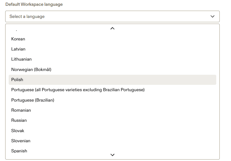 Domyślnie Jasper AI pisze w języku angielskim, jednak język możemy zmienić albo podczas przygotowywania komendy, albo w ustawieniach. Lepiej zrobić to drugim sposobem, ponieważ w ustawieniach zmienimy domyślny język, przez co będzie on automatycznie wybierany do tekstów w przyszłości.