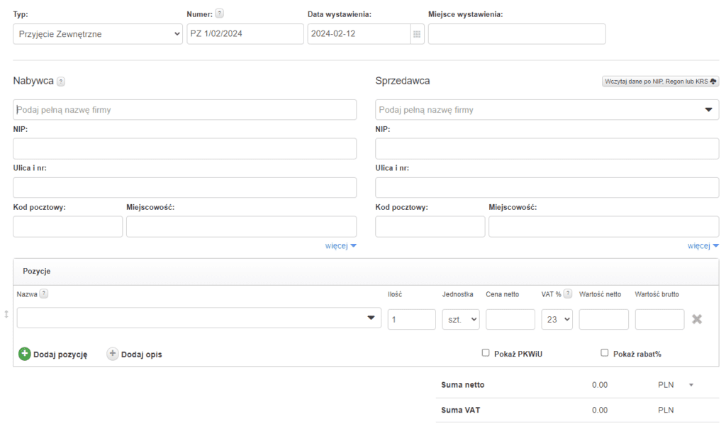 Wystawianie tych dokumentów jest bardzo proste. Wystarczy tylko podać dane, takie jak nazwa kontrahenta, oraz czego dotyczy produkt. Dane kontrahenta możemy pobrać z bazy GUS i wystarczy tylko znać NIP. Dokument magazynowy możemy następnie zapisać i wydrukować.