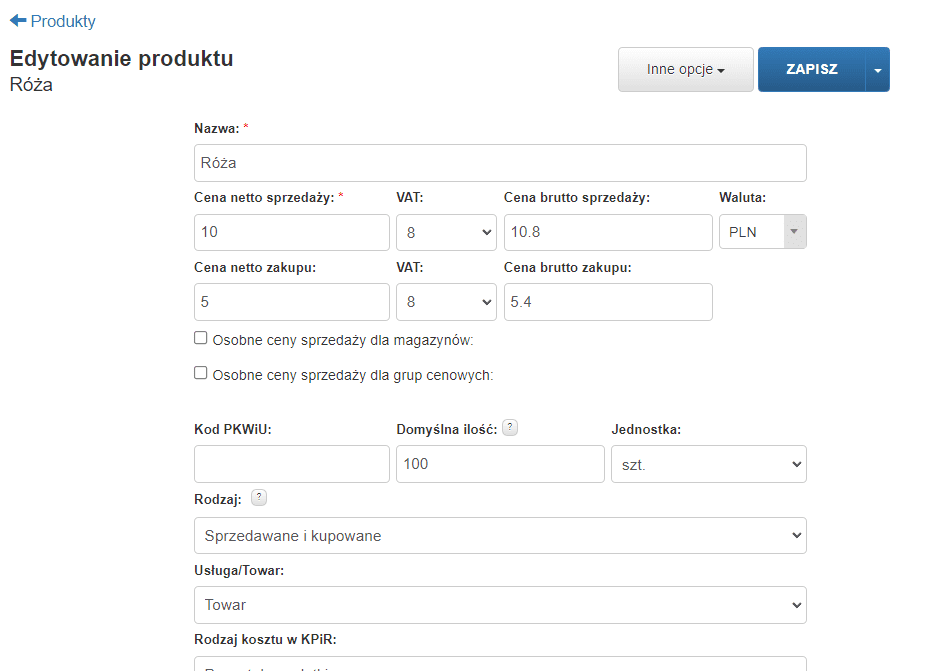 W ustawieniach możemy zaznaczyć automatyczne wystawianie wydań lub przyjęć. Oznacza to, że wystawiając fakturę VAT za sprzedaż towaru, na jej podstawie automatycznie wygeneruje się również wydanie zewnętrzne.
