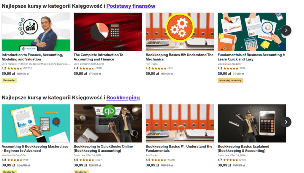 Nieco bardziej amatorskim, lecz tańszym i dobrym dla początkujących rozwiązaniem może okazać się marketplace dla kursów. Jeśli nie wiesz, z czym to się je, to pomyśl o tym jako Allegro, ale zamiast przedmiotów, użytkownicy wystawiają tu kursy.