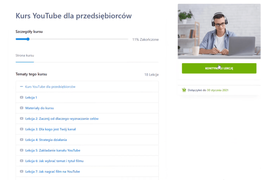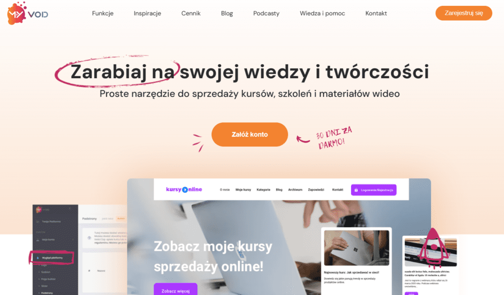 Na samodzielnych platformach stworzysz stronę dla kursu, umieścisz filmy, dostosujesz wygląd do własnych potrzeb, a także masz pełną kontrolę nad danymi Twoich klientów.