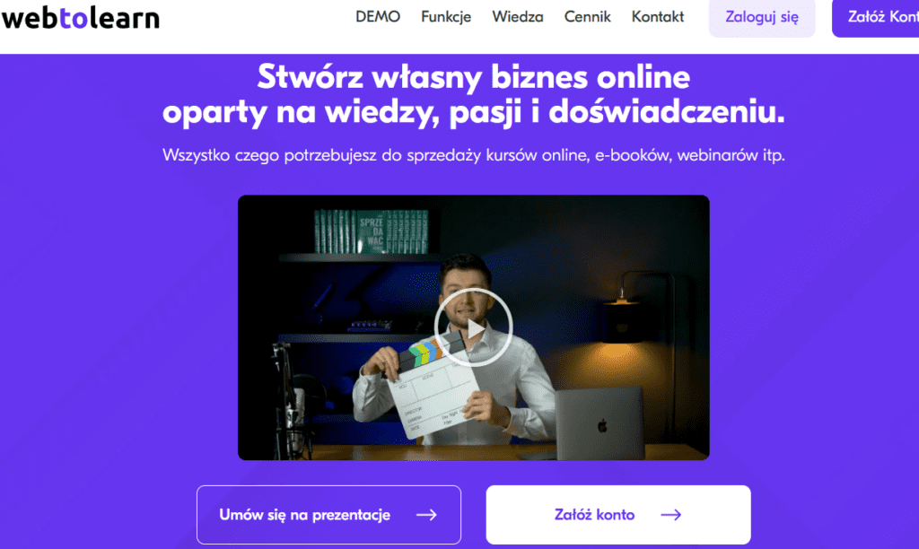 Web to Learn to jedna z najlepszych opcji do stworzenia kursu online. Jest to samodzielna platforma abonamentowa polskiej firmy, na której zarejestrowane jest prawie 500.000 aktywnych użytkowników.