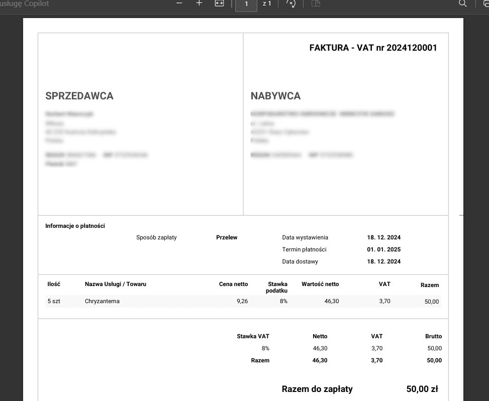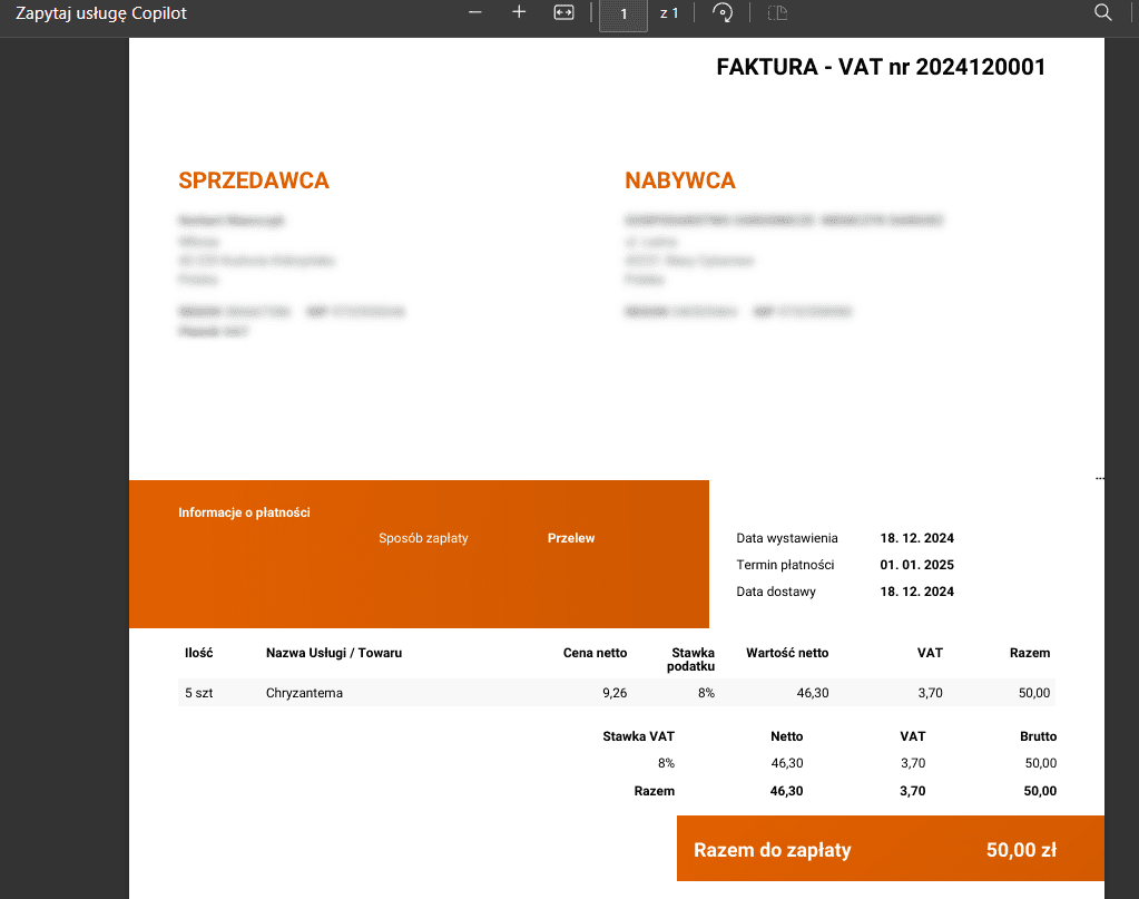 Jak wyglądają faktury wystawione na onlinefakturowanie.pl?