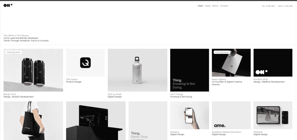 Co wyróżnia to portfolio to z pewnością fakt, że jest utrzymane w większości w dwóch kolorach- białym i czarnym oraz pochodnymi. Dzięki temu strona wygląda niezwykle profesjonalnie.