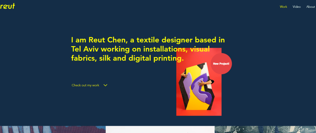 Stronę z portfolio Reut Chen także cechuje minimalizm. Po raz kolejny na górze mamy krótki opis o autorce, a poniżej prace w układzie siatki.
