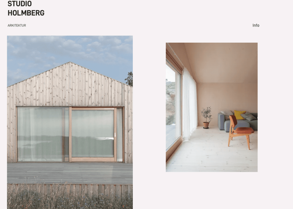 Architekt Mathias Holmberg stawia na ekstremalny minimalizm. Na jego stronie widnieje tylko jeden link, gdzie znajdziemy informacje kontaktowe, a na stronie głównej mamy tylko projekty, które wykonywał w przeszłości.