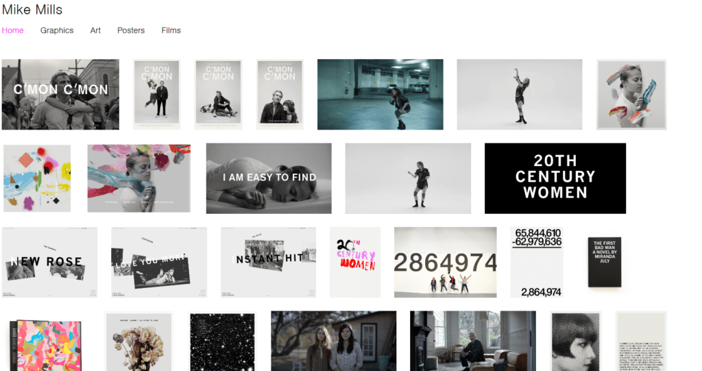 Jeżeli twój wachlarz umiejętności jest szeroki, warto zastosować strategię Mike Millsa i podzielić swoje prace na kategorie. Jeśli masz ich dużo, najlepiej zastosować małe obrazki.