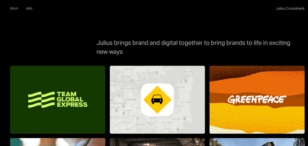 Portfolio Juliusa jest spójne, z dbałością o szczegóły, i utrzymane w ciemniej kolorystyce, co również jest wyróżnikiem.