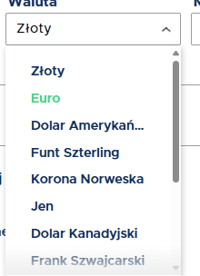 Wspomnę jeszcze o walutach, w których możemy wystawić fakturę. Nie powinno nam tutaj niczego zabraknąć i obecne są wszystkie najpopularniejsze.