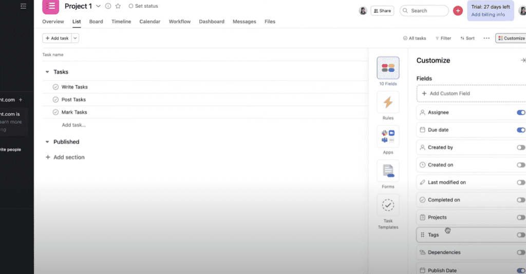 3. Asana: Również jest to popularny program do zarządzania zadaniami. Oprócz standardowych funkcji posiada funkcję sprawdzania obciążenia pracą, wiele integracji, szablony zadań, oraz aplikację mobilną.