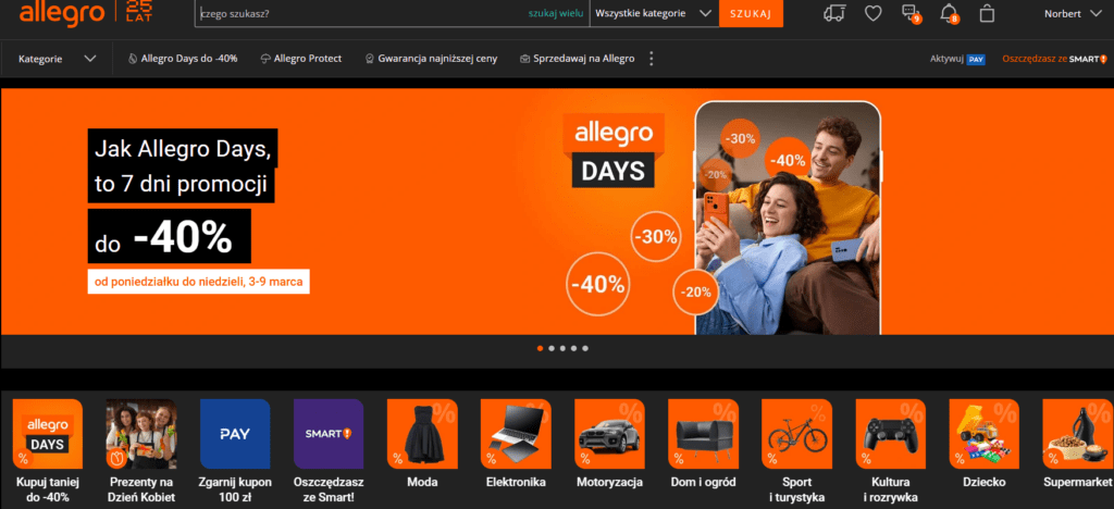 Portalu Allegro chyba nikomu nie trzeba przedstawiać. Jest to największy Polski i 3 największy marketplace w Europie, który miesięcznie ma ponad 200 mln odsłon, oraz sprzedaje ponad 70 mln produktów.
