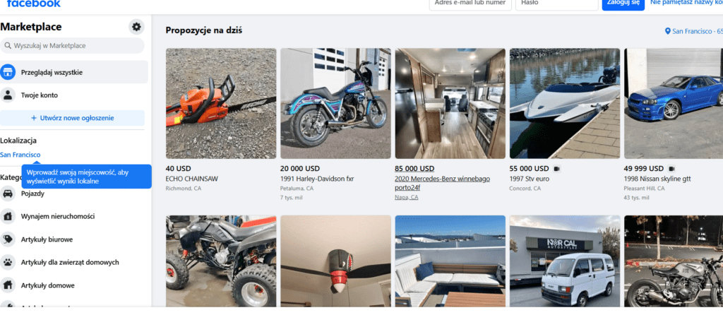 Możesz również pomyśleć o wystawianiu ogłoszeń na Facebook Marketplace. Co prawda większość transakcji to transakcje lokalne, jednak warto spróbować, ponieważ wystawienie oferty nie kosztuje nas ani złotówki.
