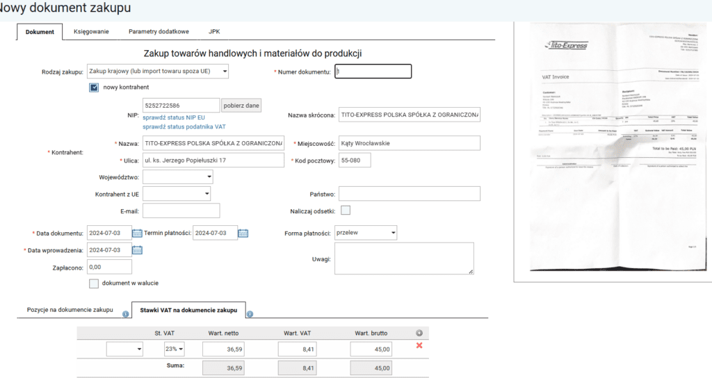 3. Zdjęcie faktury, które również nie jest w idealnej jakości