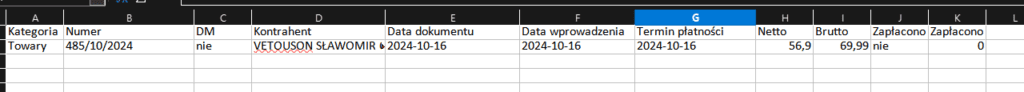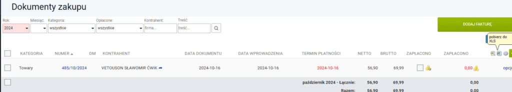Wówczas będziemy mogli pobrać plik w formacie do Excela, który następnie możemy załadować w naszym programie księgowym.