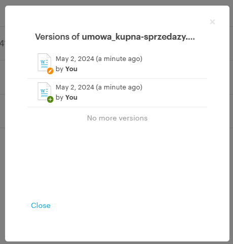 Tresorit pozwala również na przechowywanie historycznych wersji danego pliku. W zależności od planu możemy przechowywać 10, 50, lub 100 ostatnich wersji pliku.