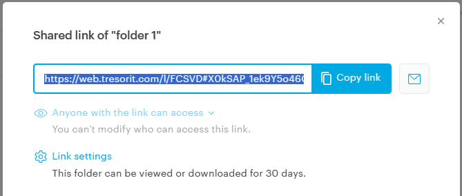 Jeżeli ktoś posiada konto na Tresorit, możesz udostępnić mu plik, wpisując jego e-mail użyty w Tresorit. Alternatywnie, możemy utworzyć link do pobrania pliku i wysłania go dowolnej osobie.